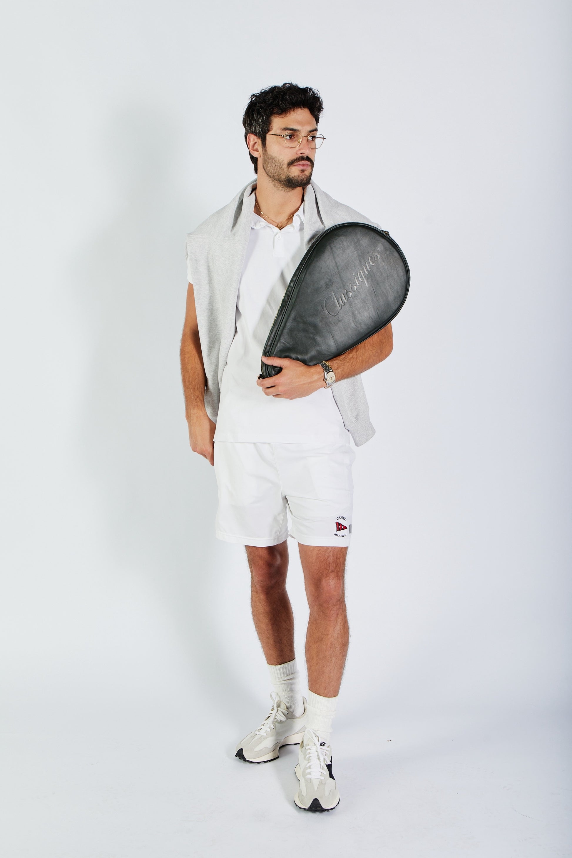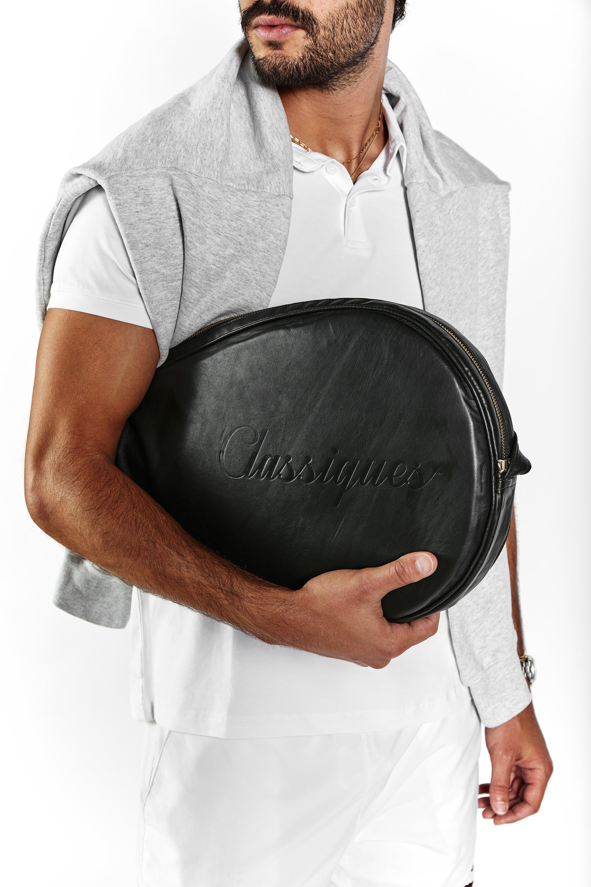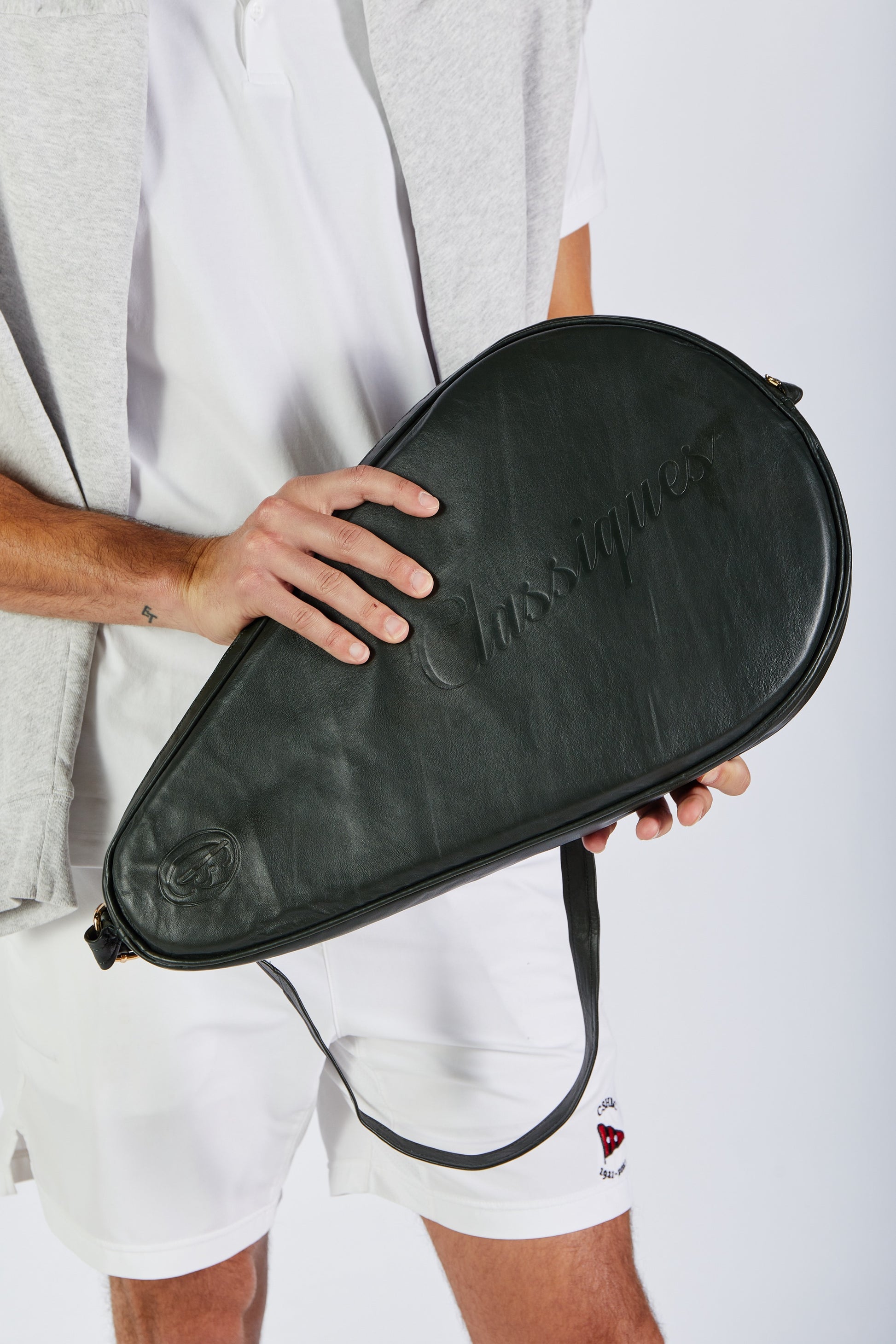 The interior is lined with ultra-soft light green lamb suede, offering a protective embrace for your padel racket while enhancing the luxurious tactile experience. The exterior is subtly embossed with “Classiques” and the brand’s icon, complemented by a solid brass zipper for refined durability.