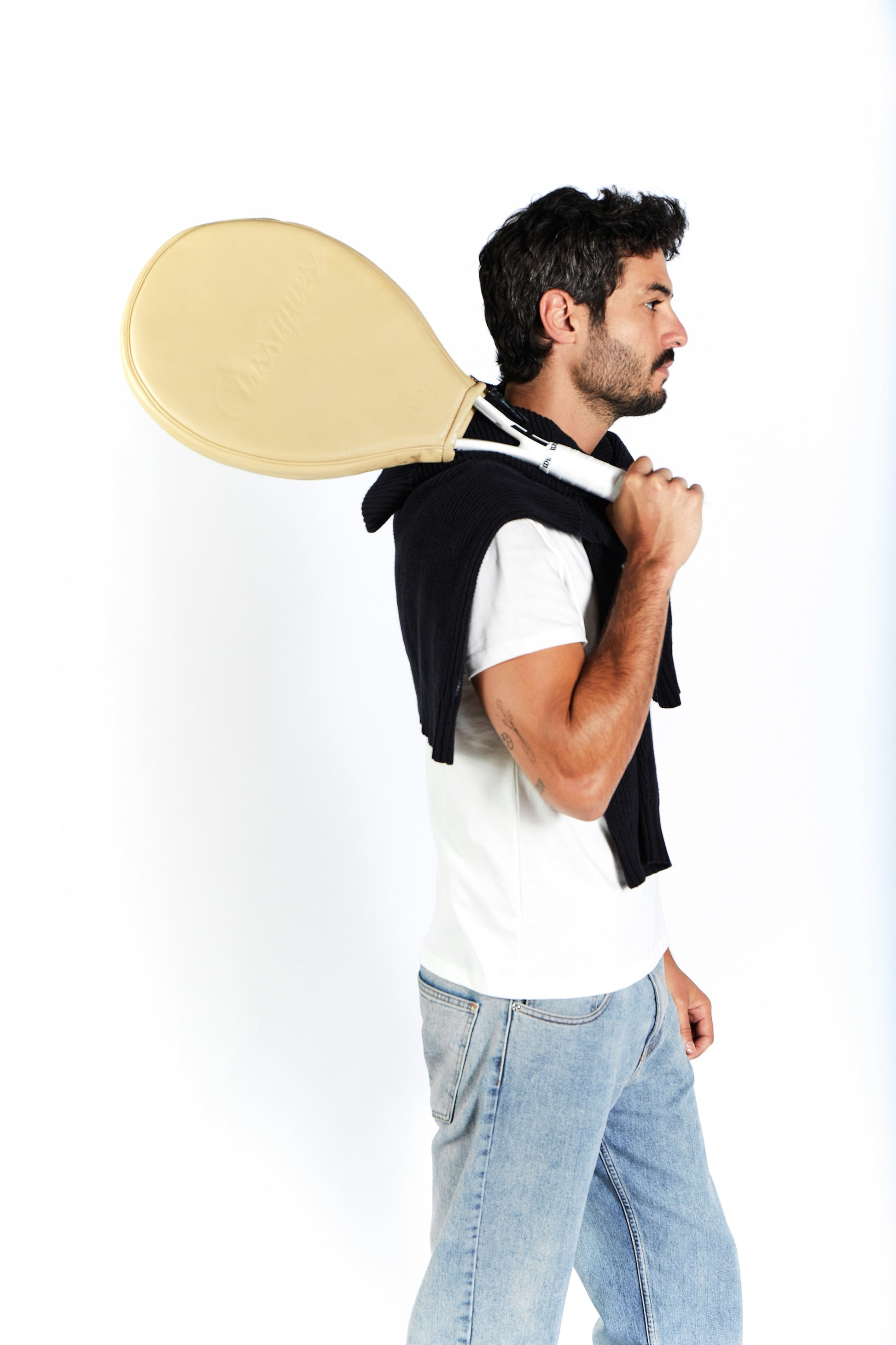 The first ever creation of Clameur Classiques™, the Iconic Champ is a quiet homage to the timeless elegance of tennis where heritage and modern refinement meet. Designed in vintage style, this cover embraces only the racquet’s face, evoking the understated sophistication of a bygone era.